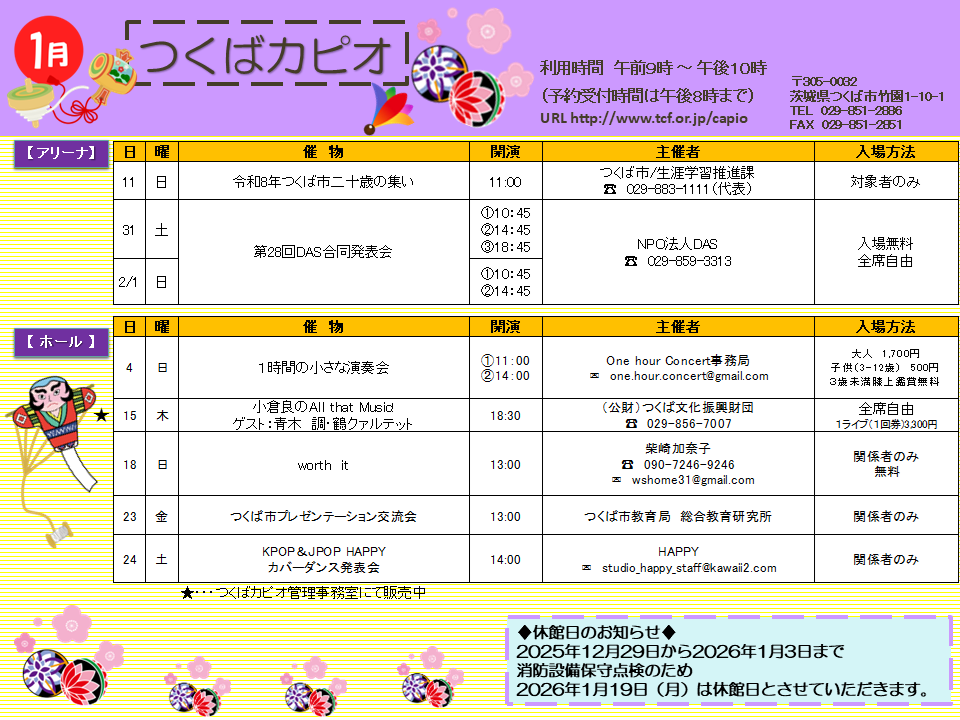 Mail:tutc-poster@tutc.or.jp①名前 ②広告の内容 ③掲示期間 ④ポスターサイズと枚数 ⑤連絡先
